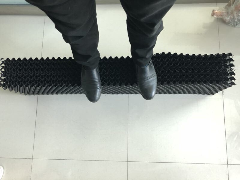 今天小編為了給大家的本公司生產的逆流方塔PVC填料,這是一款薄如紙的填料,可是你不能小看它,首先,不能因為它的薄而小看它的質量,我們來看看這薄薄的填料能承受多少重量吧! 每張填料都很薄,每張填料僅有0.3KG.小編把8張PVC填料粘了起來,所有的填料達到2.4KG,接下來小編演示團結就是力量的說法,再薄的PVC填料,只要正反面粘貼起來,奇跡就發生了!小編體重65KG呢,站在粘貼好的8張填料上,居然不變形,穩如泰山,這質量桿桿的。 小編推薦的,正是本公司賣得最火的逆流方塔PVC散熱填料,材料多薄已不是問題,問題是我們這質量,不用自夸請看圖吧!